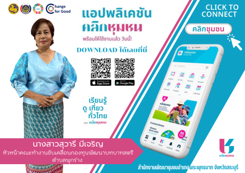 ? ?สำนักงานพัฒนาชุมชนอำเภอพระพุทธบาท จังหวัดสระบุรี ขอเชิญชวนประชาชนโหลดแอพพลิเคชั่น Click ชุมชน